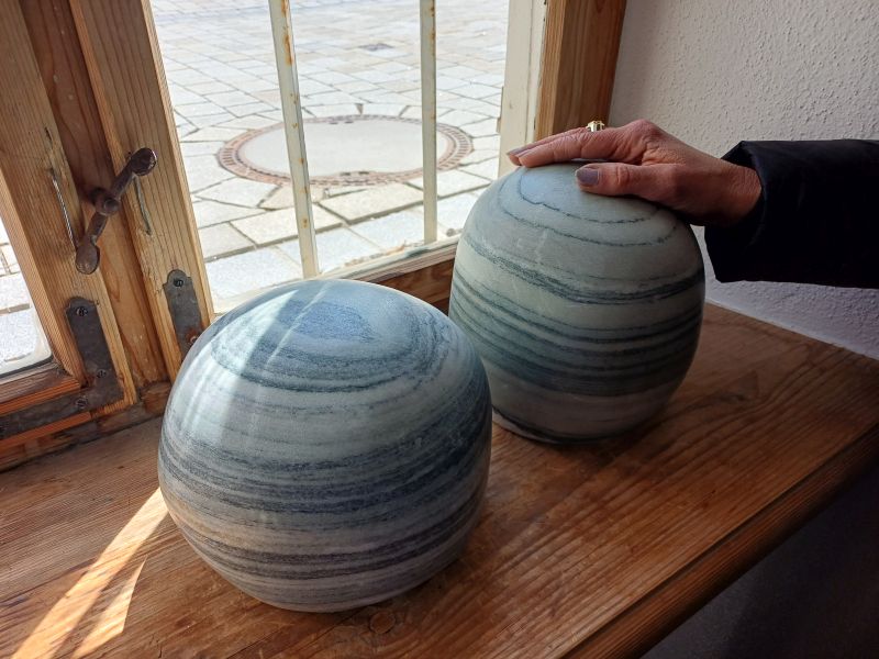 Wolfram Maria Felders Marmorskulptur „Groß und Klein“ lädt zur Berührung ein. Foto: MZ