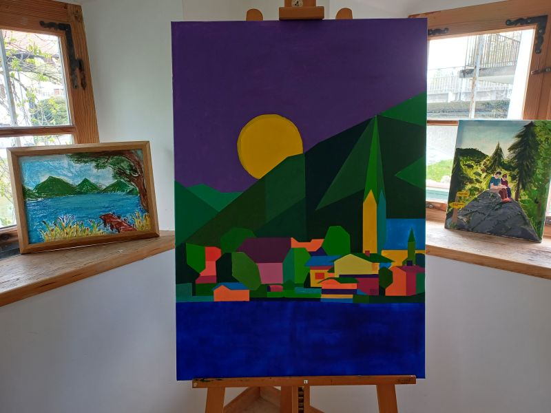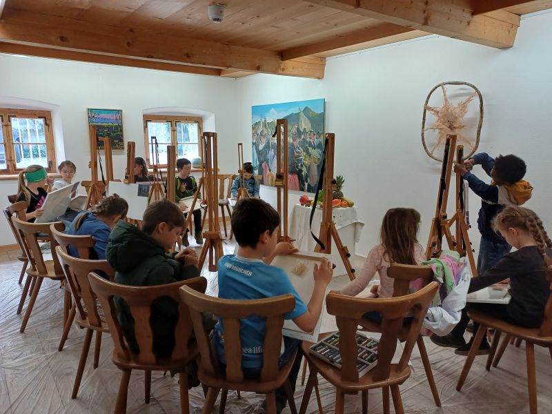 Den Werken dieser Jugendlichen ist im Jagerhaus ein eigener Raum gewidmet. Ganz erstaunlich reife Werke zum Thema „Tegernseer Tal“ sind hier zu sehen. Naturalistische Arbeiten ebenso wie abstrahierte Farbflächen.