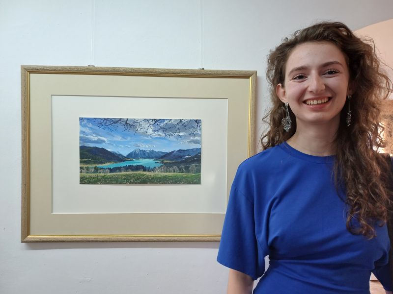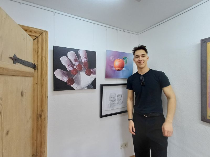 Oleksandr Ostapenko mit seinen drei Bildern. Foto: MZ