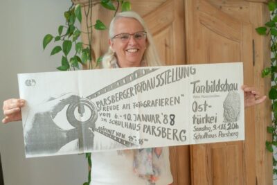 15-40 Jahre Fotofreunde_Marion Marski mit Plakat_PEKU