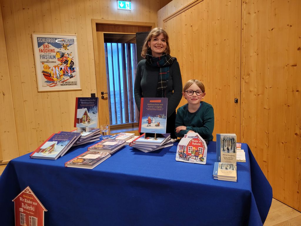 Etwa 40 Erwachsene und Kinder waren der Einladung von Jennifer Roger gefolgt, die die Veranstaltung gemeinsam mit Birgit Lutz organisiert hat. Lutz, vielbeschäftigte Expeditionsleiterin, Buchautorin und Vortragsreisende insbesondere zum Thema Plastikmüll und Klimawandel, hatte schon vor Jahren die Idee zu der Lindgren-Lesung – nun hat es endlich geklappt. Die Kinder sitzen oder liegen auf Kissen vor der ersten Stuhlreihe – trotz der Größe des Saals herrscht eine hyggelige Wohnzimmer-Adventsstimmung.
