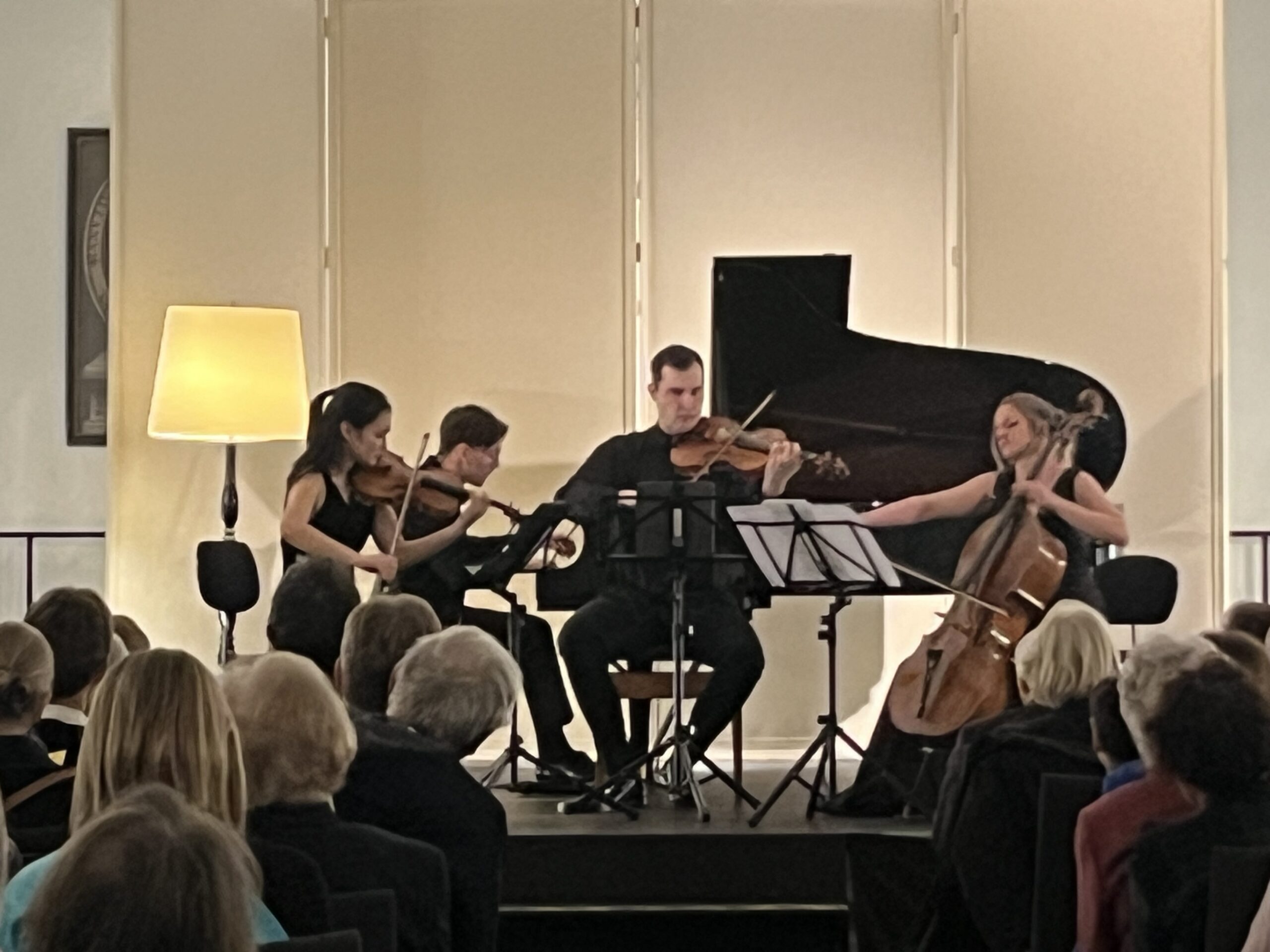 Das Confringo Klavierquartett, ein Ensemble aus vier jungen, ausgezeichneten Musikern, präsentierte drei bedeutende kammermusikalische Werke. Auf Einladung des Freundeskreis für die Förderung junger Musiker e.V. trat es erfolgreich im Tegernseer Barocksaal in der Konzertreihe „Podium für junge Solisten“ auf. Und so konnten die Besucher der Konzertreihe erstmals Klavierquartettwerke hören, wie der Vorsitzende Herr Claus Cnyrim betonte.