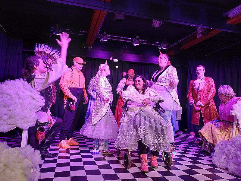 Diese finden jeden Freitag statt, nahm Regisseurin Sarah Thompson den Faden auf. Zu diesen Proben kämen alle Beteiligten mit ihren ganz persönlichen Wünschen, Ängsten und Hoffnungen zusammen. Es ist eine bunte Theatergruppe, in der Menschen mit und ohne Einschränkung miteinander wirken.