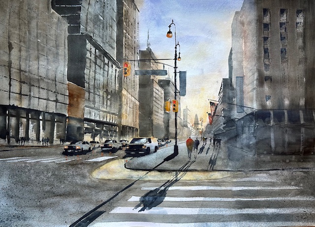 Aus der intensiven Auseinandersetzung mit der Malerei kristallisierten sich zwei Motive heraus, die ihn bis heute prägen: der ruhige Blick auf urbane Landschaften und die Beschäftigung mit dem Element Wasser.