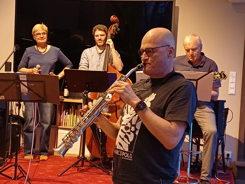 Mittlerweile hat es sich im Landkreis und darüber hinaus herumgesprochen und unterschiedliche Musikerinnen und Musiker sind dazugestoßen, etwa der Akkordeonist und Bassist Hans Danninger, der Jazz-Saxofonist Raphael Dreifuss, der Posaunist Elmar Stein.