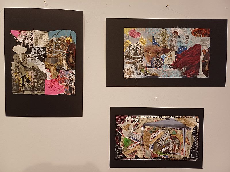 Ohne ein vorgegebenes Thema hatten Jugendliche sich der Collage gewidmet. „Sie konnten komplett frei wählen, welche Materialien sie für die Mixed-Media Arbeit verwenden wollen“, erklärte die Akademieleiterin. „Herausgekommen ist eine unfassbar ausdrucksstarke Auseinandersetzung mit der Form.“