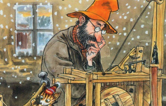 „Wir blättern um“ mit Frau Brausel (Agnes Kraus) und Käptn Brummel (Harry Oriold) für Kinder ab 3. Pettersson verstaucht sich kurz vor Weihnachten den Fuß. Jetzt ist Findus in großer Not. Nach dem gleichnamigen Bilderbuch von Sven Nordqvist.