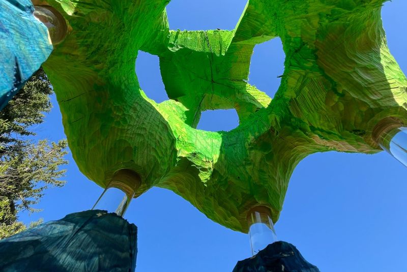Gezeigt werden Arbeiten der Künstlerinnen und Künstler, die den Kunstwanderweg „Sinneswandel“ am Blomberg gestaltet haben.
