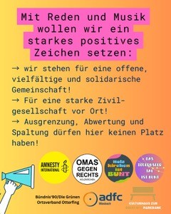 Wir sind ein überparteilicher Zusammenschluss und freuen uns über die Unterstützung von möglichst vielen Organisationen, Initiativen, Vereinen und demokratischen Parteien! Macht mit beim Demokratiefest!