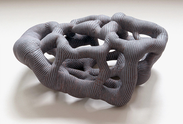 Heike Schaefer arbeitet am liebsten mit Papier und textilem Material. In ihren biomorphen Skulpturen verbindet sie die Formensprache der Natur mit mathematischen Gestaltungsprinzipien, ihre Arbeiten sind in mehrfacher Weise durchschaubar: einmal durch das verwendete Material wie beispielsweise Wellpappe mit ihrer gitterartigen Struktur und dann durch die Ablesbarkeit des Aufbaus.