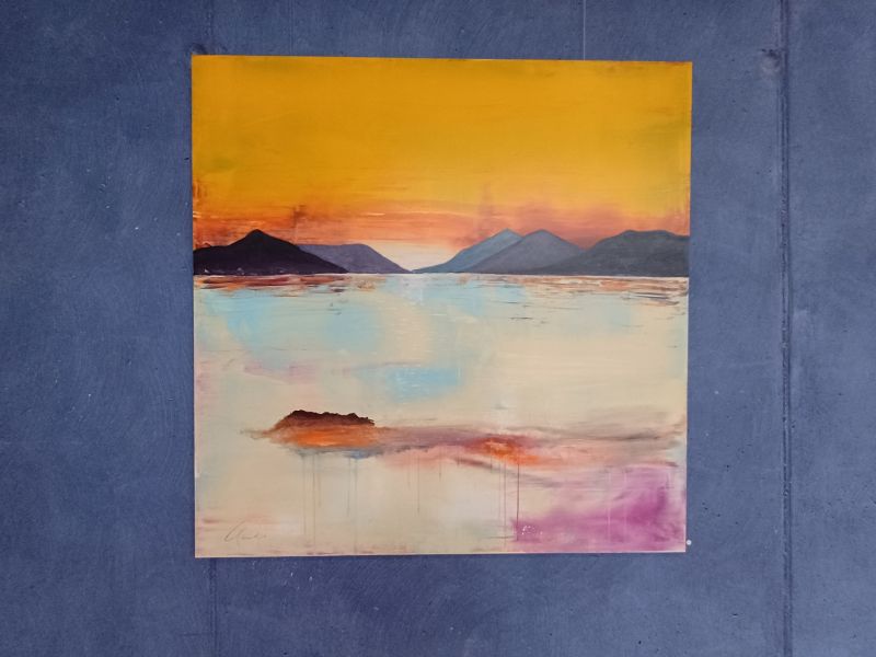 Schon damals fielen die farbintensiven großformatigen Bilder auf, in denen abstrahierte Landschaften mit viel Wasser und viel Himmel dominierten. Typisch auch die komplementäre Farbgebung in gelb-blau- oder gelb-violett-Tönen.