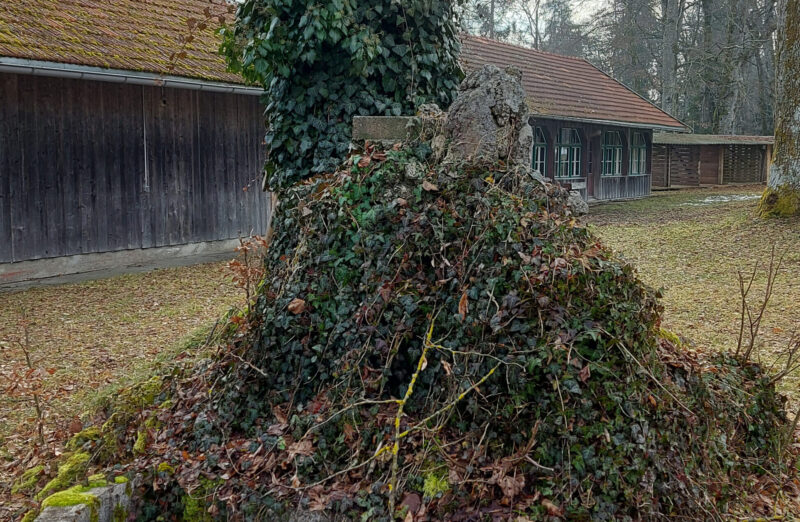 Das überwucherte Denkmal im hundertjährigen Dornröschenschlaf. Foto: AK Marterl