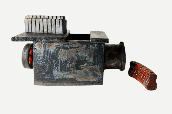 Eine Höllenmaschine und andere Skulpturen aus Keramik, die die Tragödie des Krieges widerspiegeln und unterdrückte Gefühle ins Bewusstsein bringen, fertigte die Bildhauerin Nadiia Nechkina.