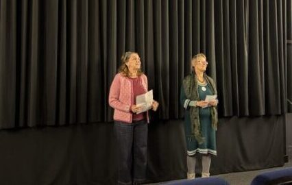 Bärbel Sokat (links) und Esther Rzehulka von „Omas gegen rechts Holzkirchen“ im FoolsKINO Holzkirchen. Foto: Andreas Wolkenstein