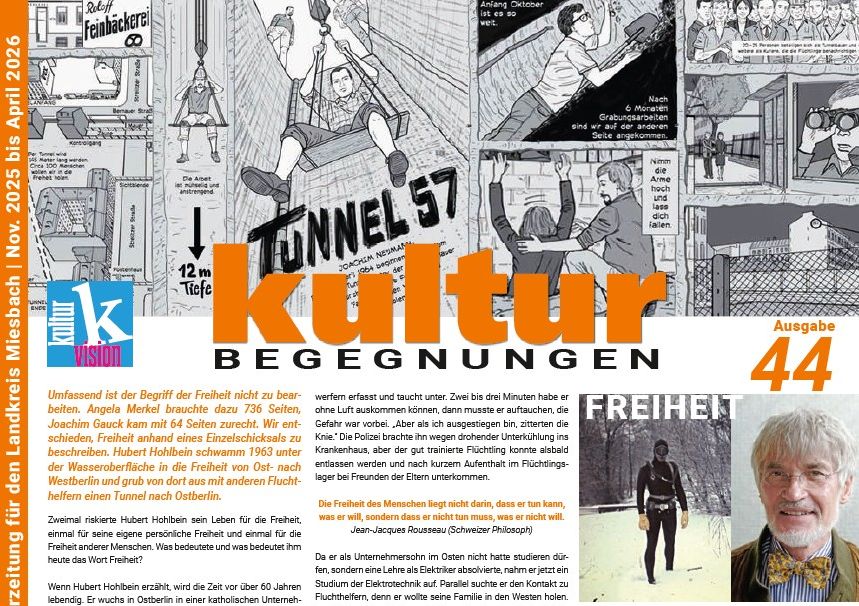 Seit Mai 2004 erscheint zweimal im Jahr unser Printmagazin KulturBegegnungen mit einem Titelthema, Künstlerporträts, Kulturinitiativen, Begegnungen von und mit Künstlern und umfangreichem Veranstaltungstipps.