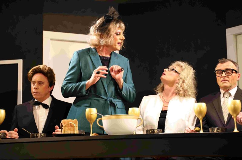 Zu guter Letzt fliegt alles auf. Die gegensätzlichen Welten und die unterschiedlichen Charaktere stoßen kräftig aufeinander – all das lustvoll und mitreißend inszeniert. Foto: Hartmut Wolf