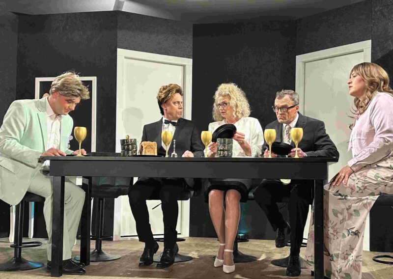 Mr. Tabarot (Simon Zirngibl, zweiter von rechts) und Jacques (Benedikt Bernöcker) machen sich über Albains schwierige Lage lustig. Foto: Hartmut Wolf