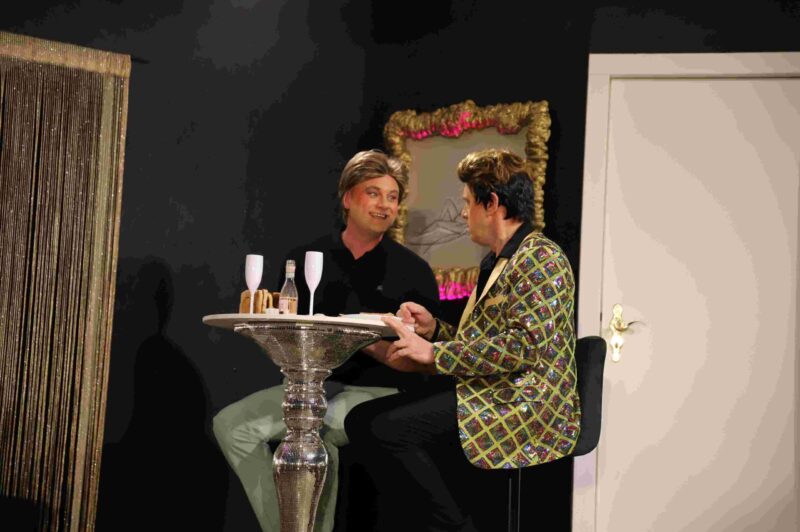 „Wir haben uns für 2026 ‚Ein Käfig voller Narren‘ ausgesucht. Da liegt die Latte hoch“, sagte Regina Weber-Toepel bei einem Gespräch im Januar. Doch die erfahrene Regisseurin – Kulturpreisträgerin der Stadt Miesbach 2023 – stellte sich der Herausforderung mit dem Team der Neuen Bühne Miesbach, die sie mitgegründet hat und die sie seit Anfang der 1990er-Jahre leitet. Nun feierte das Stück von Poiret Premiere im Stammhaus, der Bühne im Bräuwirtsaal, der bis auf den letzten Platz ausverkauft war. Schon wenige Minuten nachdem sich der Vorhang gehoben hatte, war klar, dass sich hier ein sensationeller Erfolg anbahnte. Kaum hatte Roman Postel als Nightclub-Besitzer Georges – in Pailletten-Jacket und roten Lackschuhen voll in seinem schauspielerischen Element – die ersten Worte gesprochen, da sprang schon der Funke zum Publikum über.