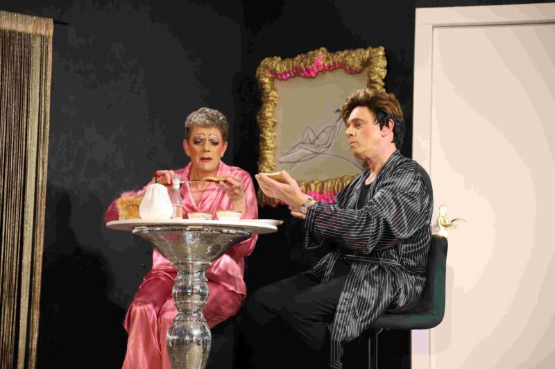 Postel schaffte es von Anfang an, den richtigen Ton zu treffen, nahm das Publikum sofort mit in seinen Alltag im schicken, aber nicht ganz jugendfrei eingerichteten Apartment, das er mit Albain bewohnt. Hier steht Georges vor der allabendlichen Aufgabe, seinen langjährigen Partner Albain zum Auftritt zu bewegen. Und dieser Albain, der Geliebte und Star der gemeinsamen Travestieshow, wird von Helmut Enzinger so wunderbar verkörpert, dass es die pure Freude ist.
