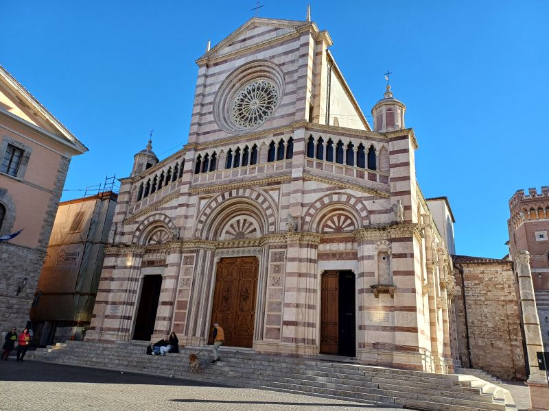 Nach dem Abenteuer ist Besichtigung angesagt. Grosetto als Zentrum der Maremma wartet mit einer sehenswerten Innenstadt auf. Der Dom San Lorenzo ist in der charakteristischen italienischen Gotik mit abwechselnd beigem und rotem Kalkstein erbaut. Zu unserer Verblüffung wird gerade ein künstlicher Weihnachtsbaum aufgestellt.