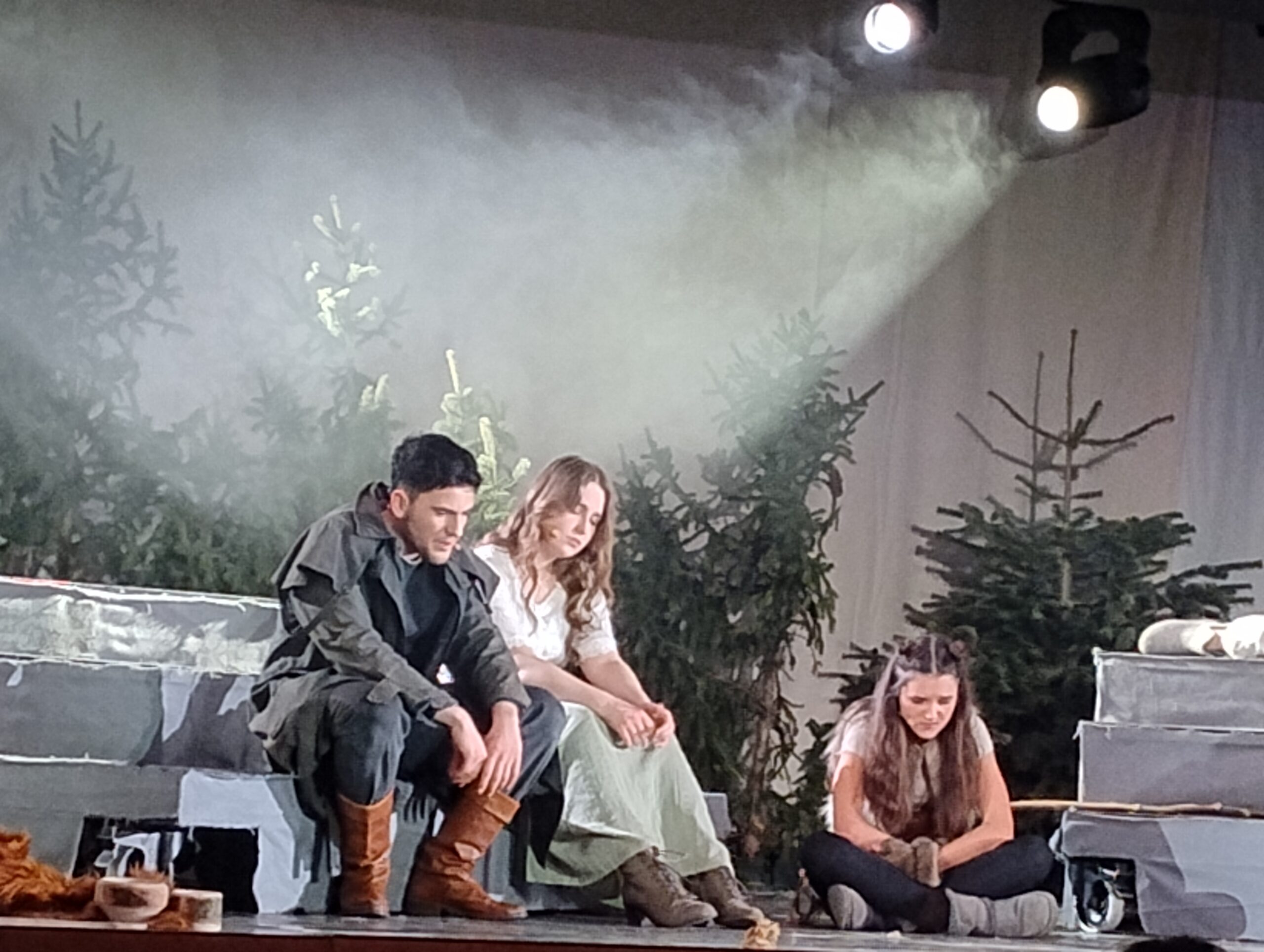 Die geballte Energie der Mattisräuber (Benno Huber, Maria Taubenberger, Magdalena Bierschneider) trifft immer wieder auf die ihrer Kontrahenten (Edda Barthel, Lara Posztos, Michael und Konstantin Poltawez). Für Ausgleich sorgt Glatzen-Per (Lorena Gusman): alt, weise und mit trockenem Humor bringt er immer wieder heitere Momente ins Geschehen. Die Mütter der beiden Protagonisten, Lovis (Sophie Höchstetter) und Undis (Emma Lechner), stehen ihren Kindern und Männern mit bedingungsloser Liebe zur Seite – und sorgen nicht zuletzt dafür, dass sich die rauen Räuber am Ende des Winters auch einmal waschen. Wenn Lovis singt, sorgt das für echte Gänsehautmomente im Saal.