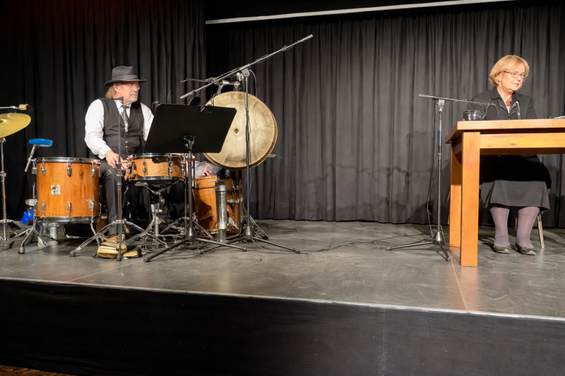 Während Johanna Bittenbinder die Textpassagen in gepflegtem Stil rezitiert und in ihren Pausen ihre großen, forschenden Augen durch das Publikum wandern lässt, mimisch die von ihrem Mann vorgetragenen Texte kommentiert, sogar einmal leicht zur Musik mitschunkelt, erweist sich Heinz-Josef Braun als stimmlicher Modulationskünstler. Treffsicher charakterisiert er stimmlich einen derb-lauten Bauern, den heiseren Nachbarn Sterzer und dann leise-geheimnisvoll auch den Einbrecher „Mich“: Der hat sich heimlich einen ganzen Tag im Stadl einquartiert und wird so unfreiwillig zum Zeugen der Tatnacht. Am Ende, bei der letzten Schilderung der schrecklichen Morde durch die Augen des Mörders, bricht Johanna Bittenbinder schließlich in Tränen aus, ein ergreifender Augenblick, der die Grausamkeit der Tat tiefe Emotionalität verleiht.